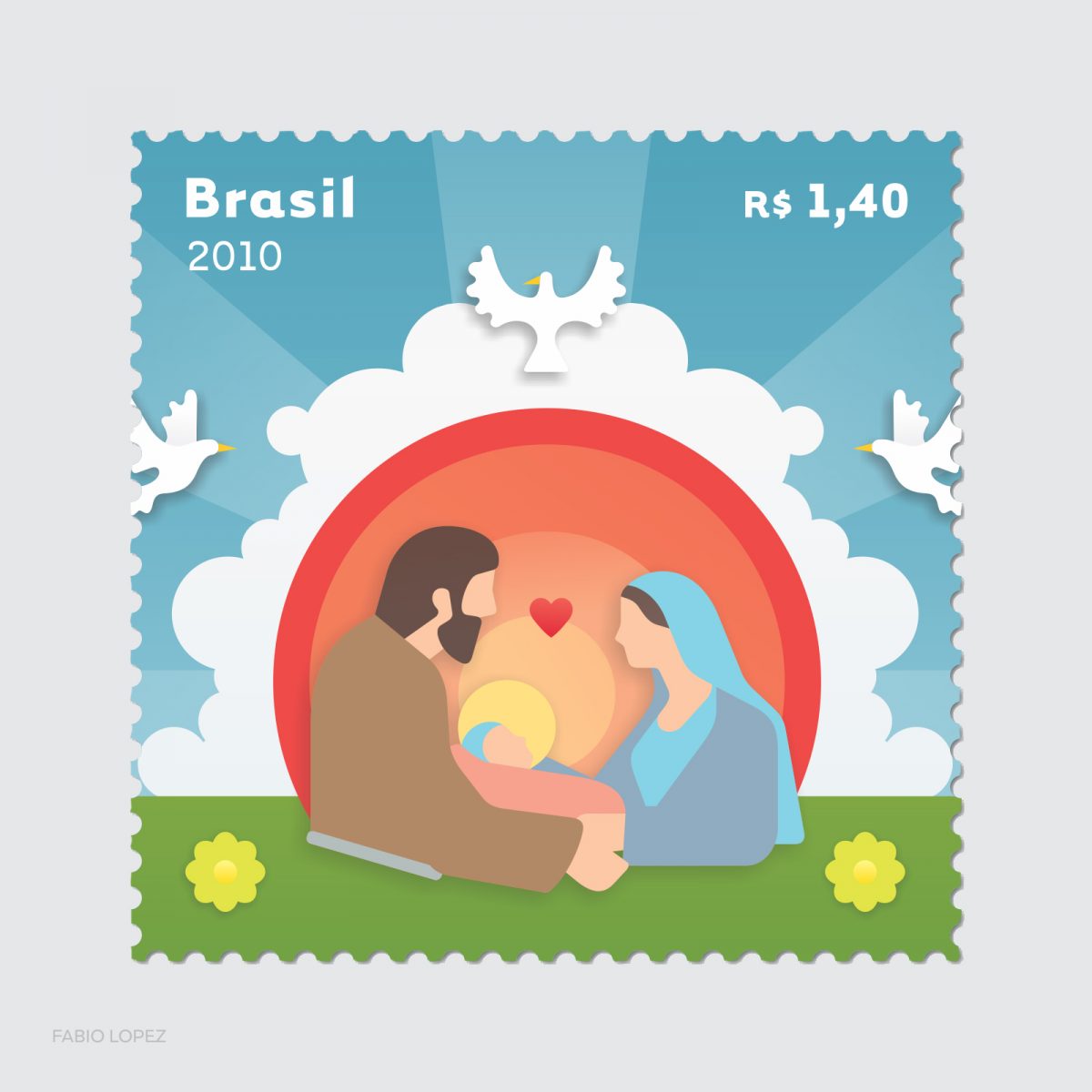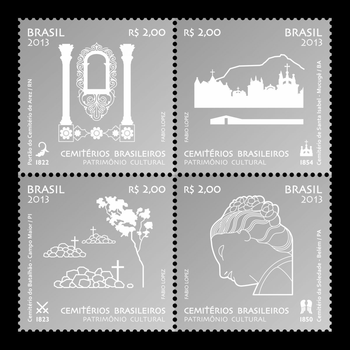 Fabio já havia trabalhado antes com a criação de selos para o correio em 2010, quando fez um bloco com a temática Natal, e em 2013, com uma série selos sobre Cemitérios Brasileiros tombados. Os dois projetos tiveram tiragem especial de 50 mil unidades, foram produzidos pela Casa da Moeda e impressos em offset.