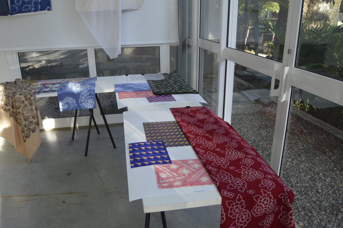 Por último, também no PRELO, os alunos fizeram parte de uma experiência com Tie Dye e Batik, técnicas de tingir comumente utilizadas na África e Ásia. Para isso, goma de mandioca foi usada e aplicada por meio de garrafas de ponta fina, pincéis, carimbos de E.V.A. e aquarela líquida. Para os nós e amarrações feitos no projeto, a opção foi o corante industrializado.