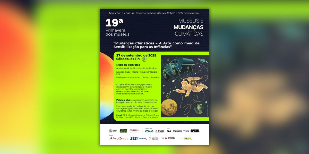 O professor Guto Lins é um dos convidados da mesa Mudanças Climáticas – A arte como meio de Sensibilização para as Infâncias, no dia 27 de setembro, às 11h, no SESI Museu de Artes e Ofícios. A mesa faz parte da programação da 19ª Primavera dos Museus que tem como tema: Museus e mudanças climáticas.