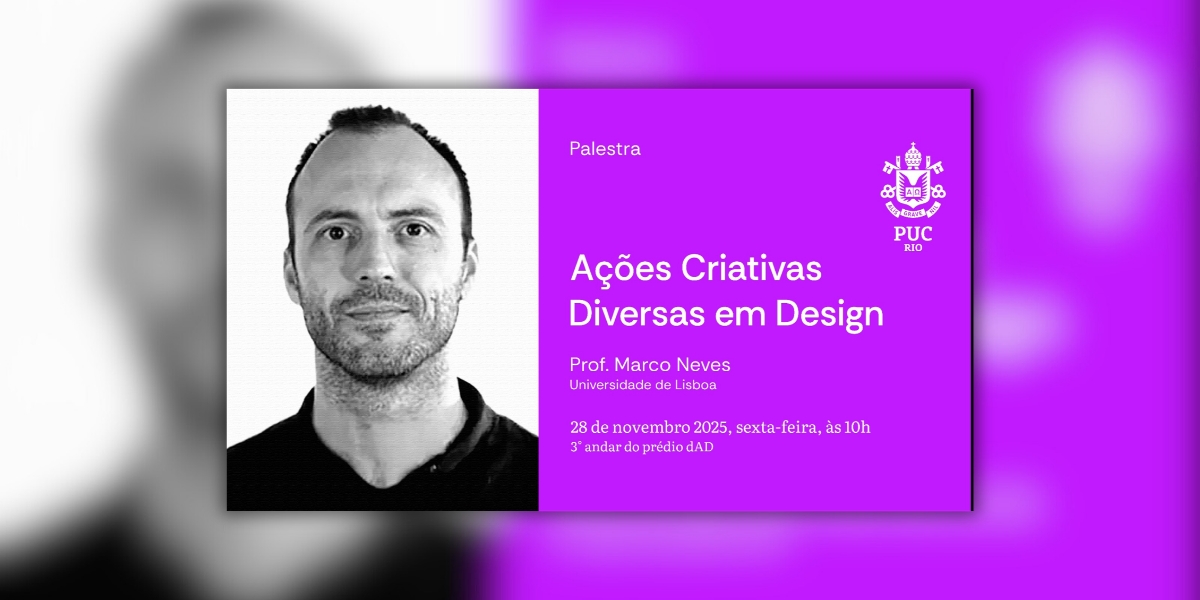 O Departamento de Artes e Design convida para a palestra Ações Criativas Diversas em Design ministrada pelo o Prof. Marco Neves, da Universidade de Lisboa, no dia 28 de novembro, às 10h, no 3º andar do dAD.