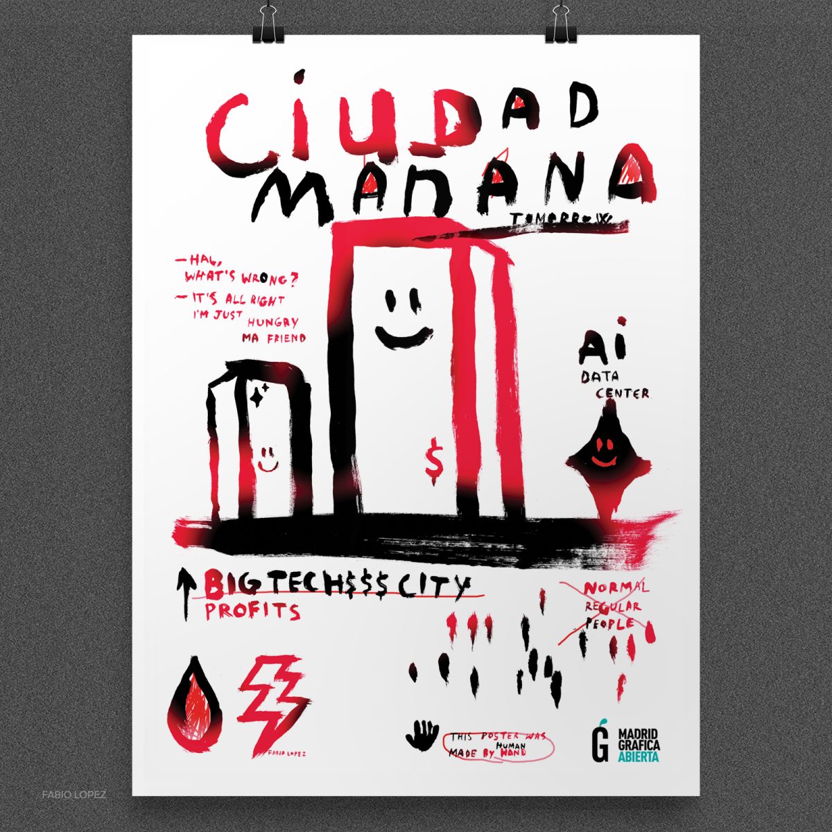 O professor Fabio Lopez teve seu cartaz selecionado, pela segunda vez consecutiva, na MADRID GRÁFICA ABIERTA. Os cartazes escolhidos fazem parte da exposição Ciudad Mañana | Cidade Amanhã na Praça Juan Goytisolonas, em Madrid, Espanha.