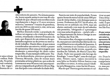 O jornalista Zuenir Ventura faz uma homenagem, no jornal O Globo, à professora Thereza Miranda pela comemoração de seus 90 anos e sua exposição “Memória”, em conjunto com o professor Bruno Big.…