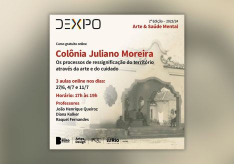 O Departamento de Artes e Design convida para o curso gratuito Colônia Juliano Moreira, organizado pela DEXPO 2023/2024, com três aulas online (via Zoom): Dia 27/06 – 100 anos da Colônia Juliano…
