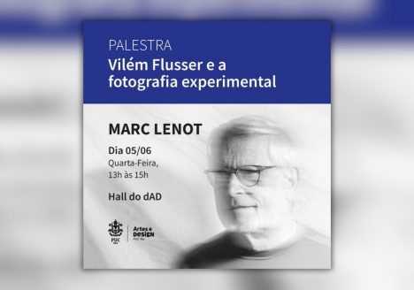 O Departamento de Artes e Design convida para a palestra Vilém Flusser e a fotografia experimental com o fotógrafo Marc Lenot no dia 5 de junho, às 13h, no Hall no dAD.…