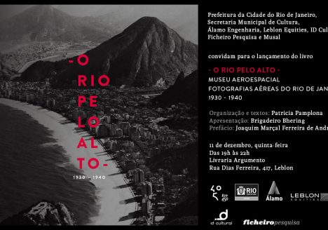 Lançamento do livro “O Rio pelo alto”, organizado por Patricia Pamplona a partir do acervo fotográfico do Musal. Quinta-feira 11/12, a partir das 19h, na Livraria Argumento no Leblon.