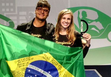 Aluno de design entre os integrantes da equipe vencedora do Concurso “Michelin Challenge Bibendum”