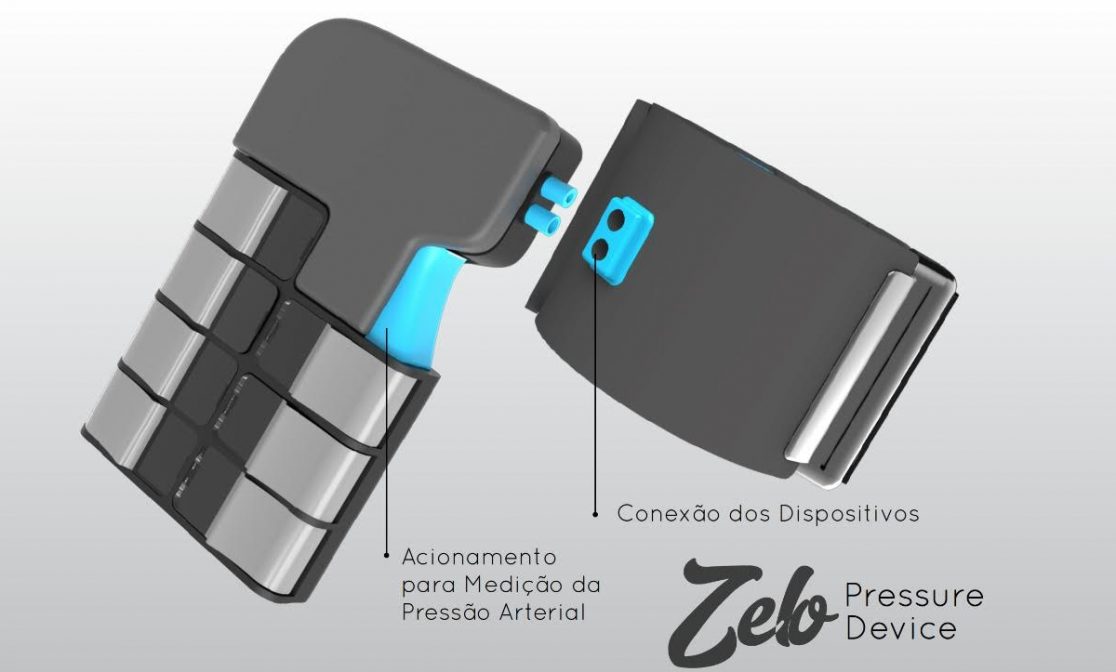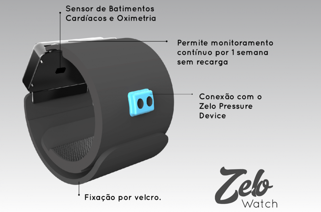 São dois dispositivos: um relógio e um medidor de pressão, que possui espaço para armazenamento de remédios. O Zelo possui diversas tecnologias embutidas nos dispositivos–dentre eles GPS, uma camada de sensores e bluetooth–as quais compõem a parte funcional e garantem tanto o monitoramento da movimentação e saúde do usuário, quanto a sua comunicação com outros dispositivos.