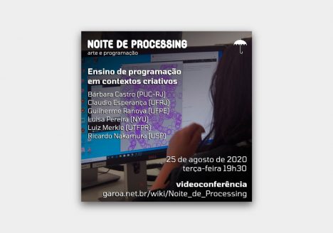 Profa. Barbara Castro é uma das convidadas da videoconferência “Ensino de Programação em contextos criativos” como parte do evento “Noites de Processing” que ocorre dia 25 de agosto, às 19:30, via Google…