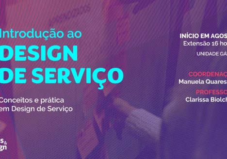 O curso Introdução ao Design de Serviço, ministrado pela professora Clarissa Biolchini, vai ocorrer aos sábados, nos dias 03 e 10 de agosto, das 9h às 18h. O objetivo do curso é…