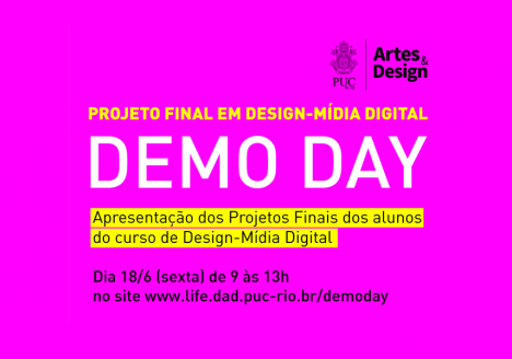 O Demo Day nesse semestre será novamente virtual! Na sexta-feira, dia 18/6, de 9 às 13h, os alunos de Design-Mídia Digital estarão demonstrando os seus Projetos Finais no tradicional Demo Day, que…