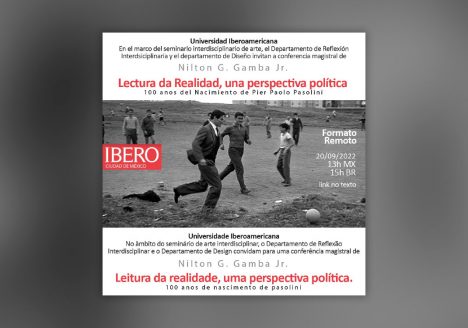 O professor Nilton Gamba Jr. é o convidado da Universidade Iberoamerica (México) da conferência magistral “Leitura da realidade, uma perspectiva política. 100 anos de nascimento de Pasolini” no âmbito do seminário de…