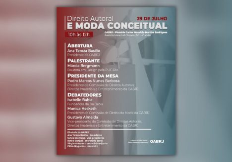 Marcia Bergmann, pós-doutoranda do PPG Design, é a palestrante convidada do evento Direito Autoral e moda conceitual que ocorre no dia 29 de julho, das 10h às 12h, no Plenário Carlos Maurício…